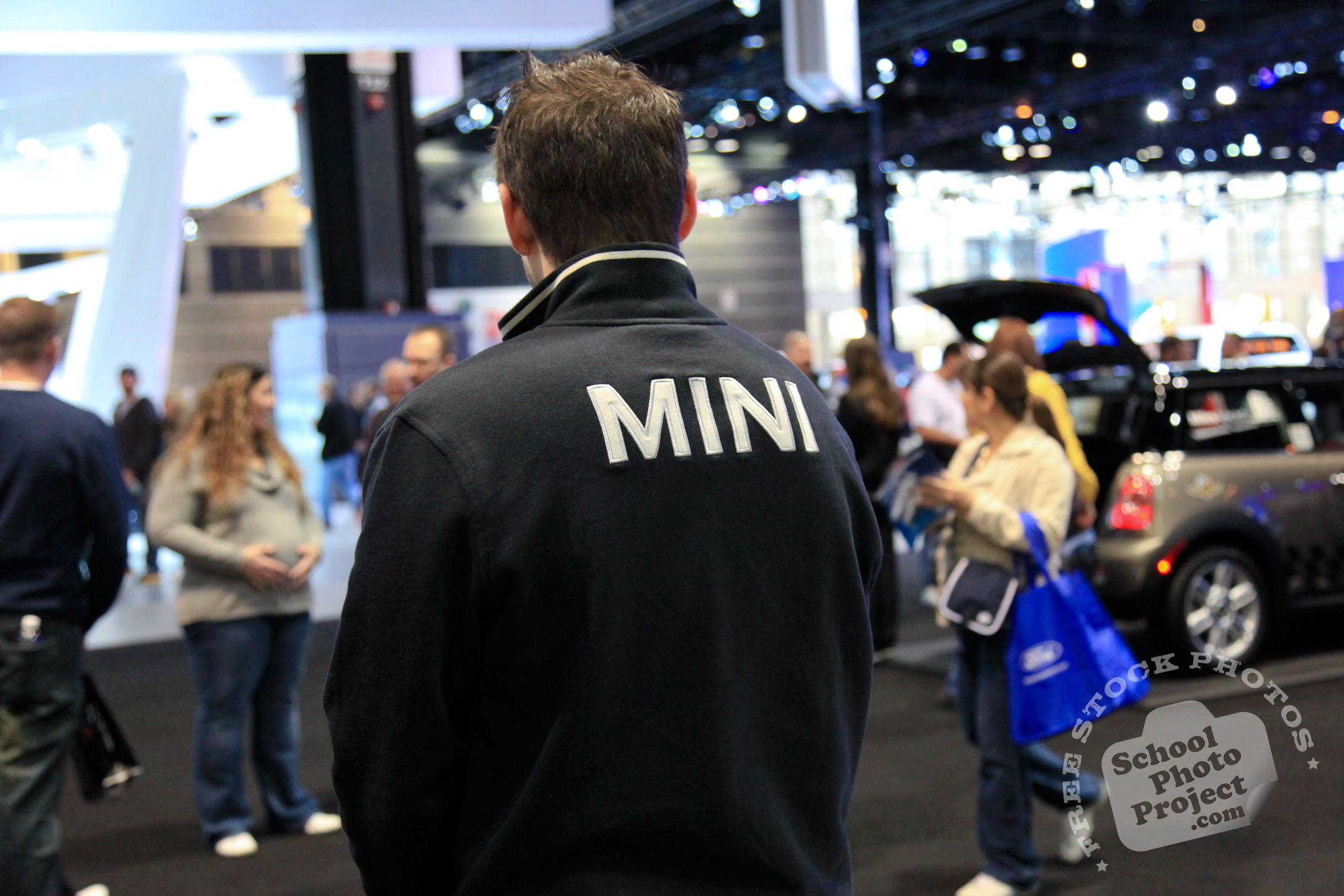 Free Photo Tags: Mini Cooper personnel, exhibit agent, Chicago Auto Show, stock photos, free images, royalty free pictures, school photo project use